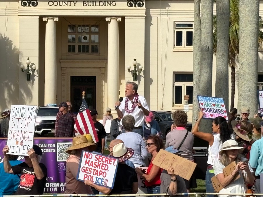 Gary pix on county lawn giving speech